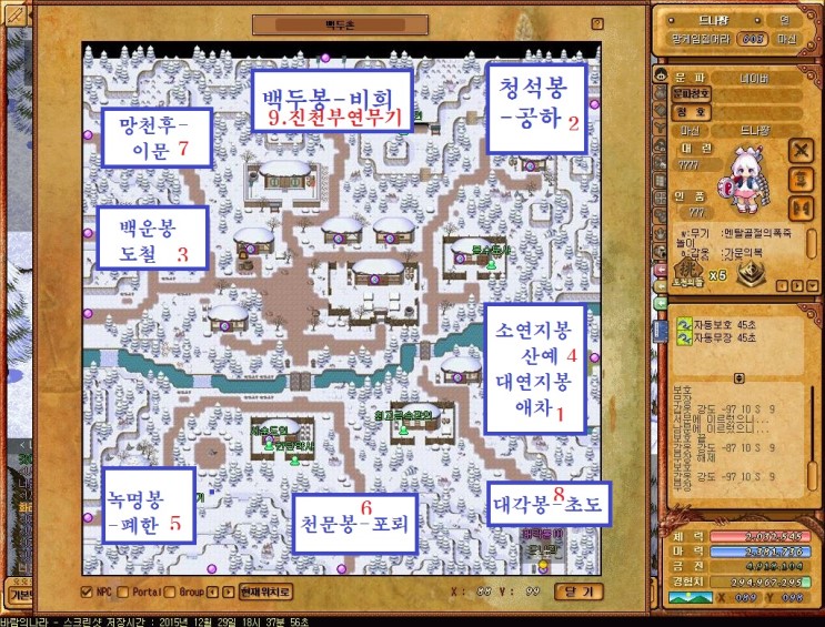 바람의나라 천부연퀘스트 할때  유일한 골칫덩이가  저기보이는 8개위치와 NPC형제들 이름임니다.