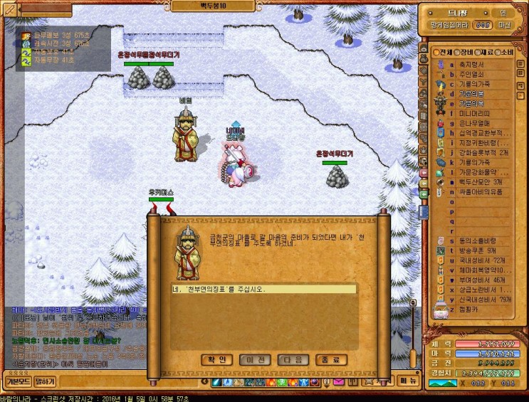 29번글 천부연퀘스트2 (안깨도 됨, 28-> 30번글로 바로 넘어와도 상관은없지만 백두산관광하는것도 좋다고생각함)