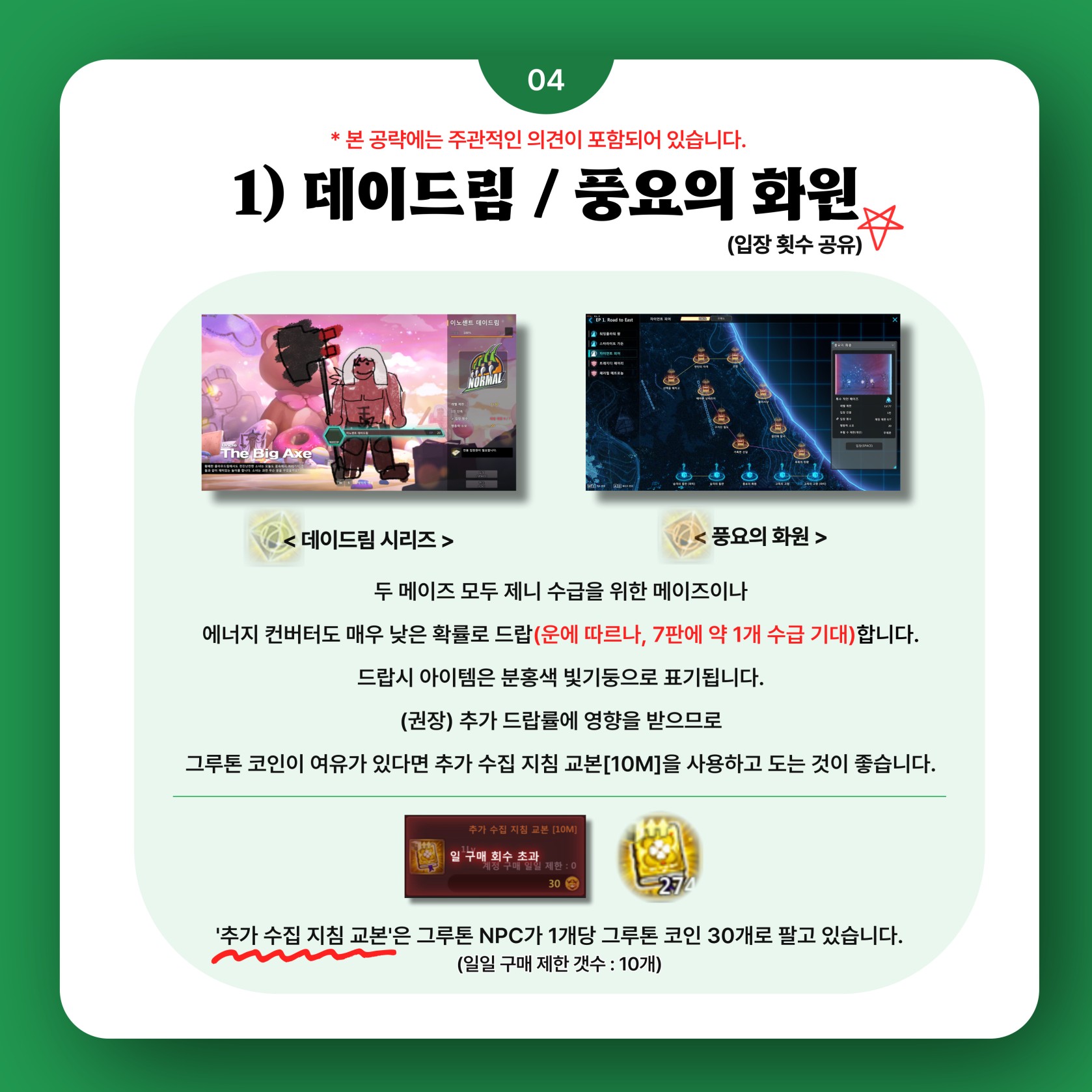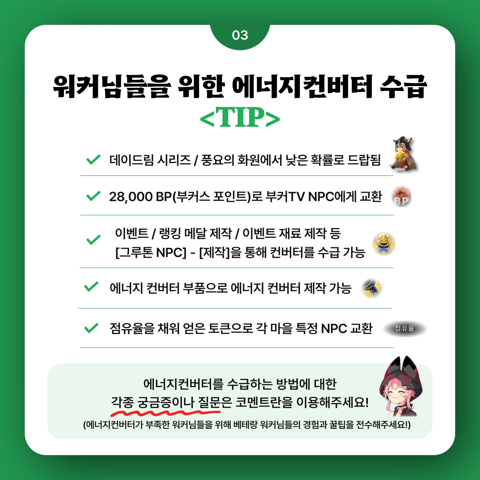 기타게임 게임공략 & 팁 () 소울워커 에너지컨버터 파밍공략 dojin1026 2023.09.27 - 09:59 19 < 사진을 클릭하시면 더욱 선명하고 큰 이미지로 간편하게 확인하실 수 있습니다 > 출처 : https://game.naver.com/lounge/soulworker/board/detail/2044346 Attached file MDAxNjg1NjI2ODk5MjYx.JxfM9L8CbqxAqpjPur3NEHfkkiMSq6K7pKAk968yxhsg.f4O5m-gWtascoFXTU3h_1mEPhpSCKuyz5x9ZE_9X7UEg.JPEG 154.8KB 0MDAxNjg1NjI2ODk5Mjg1.1vT7MbUTnwU0y7ZH8vi3pXpUCEQW_-vNHFhjdFRu4Tsg.2QQnFBXHPrs5h4QCcv2GQZpaPUFyXphA9NJIm3UCt40g.JPEG 318.1KB 0MDAxNjg1NjI2ODk5MzI4.62j8y_4gO0YDKFpW27G3yjzE2GpGHCxV11nWlIQrdCYg.kV0jOv2Lphv0DNlwaGrqpPrV-HMnlhrWdumB_gQXXMsg.JPEG 307.8KB 0MDAxNjg1NjI2ODk5Mjk4.7hGYLFoU87T5ZDGhwx8mKlRlktoxBInhSvR-IR78s6kg.TmcaG_d9i_FTKC1jadg5KtJQidsrRjYcpsdpjUIxxVUg.JPEG 283.7KB 0MDAxNjg1NjI2ODk5MzM1.FDtiRZ9Z_gR0uSRytYKk_EVBvVzC4M2IPTi2X1SzbTkg.BBR8-qW563wOFvcuMbutM9kAcxvcjNBTEVMIPkyQeygg.JPEG 307.1KB 0MDAxNjg1NjI2ODk5MzA1._k49YyCdr9vgPgOwAI_CRZFwTkq7D5oYUQFAJPgwnRgg.e9OK9suzX5JLuW-SadCh2Rgn4OOsxp-uLyWKRyWrR3Yg.JPEG 208.0KB 0MDAxNjg1NjI2ODk5NjAw.hXqfM_qFi1ZXZ0-MVtoTc-SNSLCw-xkx6yzOkORvBVEg.-1X1WoEiHm14oeWaD6aP9IQWGSFiRGfYaT-n4Sb6_m4g.JPEG 247.9KB 0MDAxNjg1NjI2ODk5NTcx.f55LXBAdstzTqu0ilTEbCt7ioDQG1bA7aVFNSs1PEtgg.i3ufBwlSAdXUCp6n8o_2N1n_EkFKeSnGuS7hgDFKTLUg.JPEG 244.5KB 0MDAxNjg1NjI2ODk5NzE4.ZkP228I9oUZs4Xo-00983ZQ0fqOOWNjfe0b1p88kg9Ig.ke_AQKt1rAGKuwCDL4Cy9KGVK-ZpR-DgC0cVCaRMFCIg.JPEG 289.4KB 0MDAxNjg1NjI2ODk5NzMz.MfHSz4e0Rd2zWX19pb-BazpcpZemsKexBx6wBUSr2Pkg.CmeCTrRl5InKhm0LjXY-Vp05Qoi8QeI_G0rmPbdo1kUg.JPEG 246.8KB 0MDAxNjg1NjI2ODk5Nzg5.fxmdX_MC3hMX8o_MIZhIms1fEnDI16s0bWkIwpwF_egg._trf_X3whZCZ6rZ72NKJrHs4y2OJ5BfiONJ26zvp24Yg.JPEG 187.0KB 0 이 게시물을.. N 0 0 [던전앤파이터] 빠른 115찍기소다팝 19 dojin1026 dojin1026 님의 최근 글 소울워커 에너지컨버터 파밍공략 19 2023 09.27 소울워커 제니벌기 공략 21 2023 09.27 소울워커 데자이어 각성편 18 2023 09.27 에테르게이저 조합팁 17 2023 09.27 에테르 게이저 소소한팁 24 2023 09.27 dojin1026 님의 최근 댓글 아 됐네요 제가 필더설치할때 뭐 아니오 눌렀었는데 재설치하고 예 누르니까 정상적으로 됩니다 감사합니다 2024 01.08 구축은 되었는데 게임키고 나면 글로벌 배포 오류라고 뜨는데 이건 어떻게 해결해야 할까요...? 2024 01.08 ㄳㅇ 2024 01.08 감사합니다~ 2023 12.03 감사합니다 2023 10.10 글쓴이의 서명작성글 감추기 댓글 쓰기 에디터 사용하기 닫기 글쓴이 비밀번호 댓글 등록 view_headline 목록