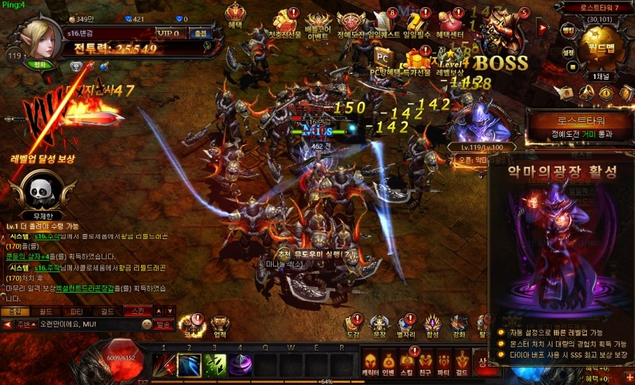 첫번째는 악마의 광장입니다. 아마 레벨업 과정에서도 많이 이용을 할텐데 악마의 광장에서는 대량의 경험치를 얻을 수 있습니다. 특히 무과금게임 뮤템페스트에서는