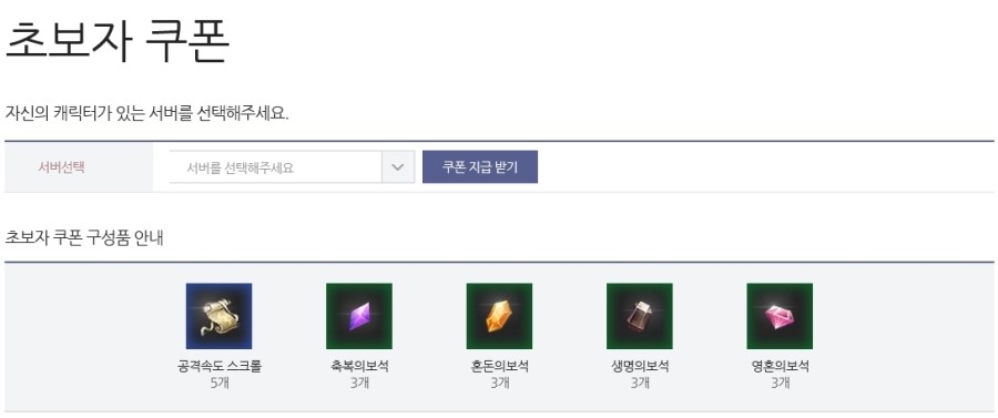 뮤템페스트에서는 초보자 쿠폰을 지급하고 있는데요. 자신이 속한 서버를 선택하면 쿠폰번호가 발급되는데요. 게임에 접속해서 '혜택센터' 클릭 후