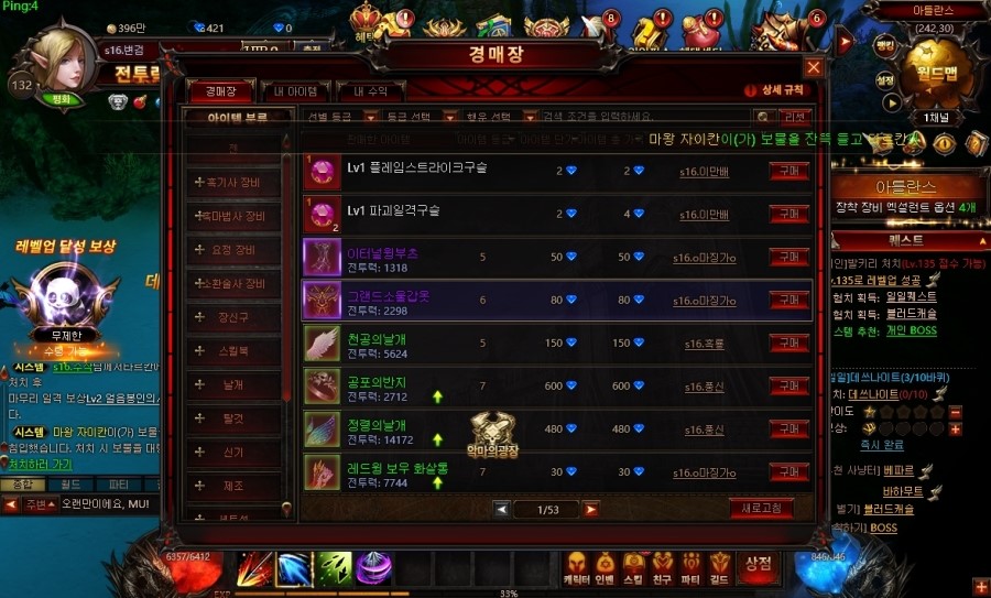 경매장시스템도 있어서 게임도 즐기고 용돈벌이도 할 수 있는점도 장점이죠. 요게 또 좀만 신경쓰면 쏠쏠하거든요 ㅋ