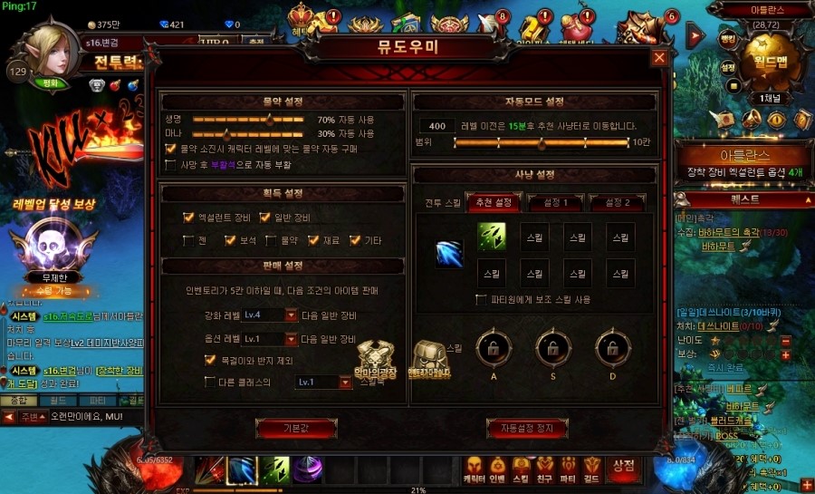 웹RPG 의 공식중 하나가 바로 3종 자동세트죠. 자동전투, 자동퀘스트, 자동이동. 뮤템페스트도 이런 자동시리즈를 잘 이어가고 있는데요. 자동 시스템과 함께