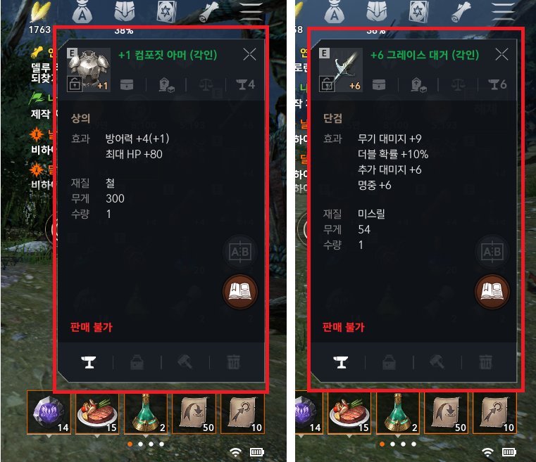 그만큼 장비아이템은 곳곳에 사용되므로 결코 버리거나 판매를 하시면 안됩니다.
