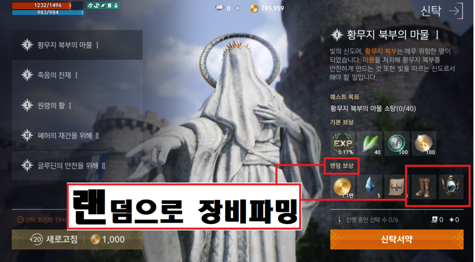 2. 초반 장비아이템은 신탁퀘스트로 고급등급 장비 파밍