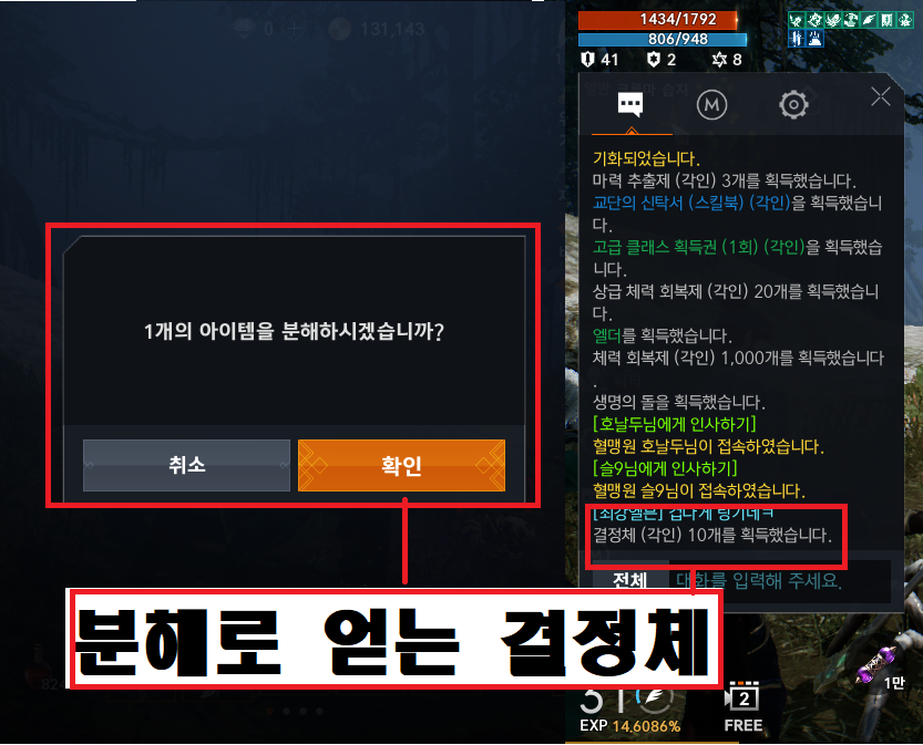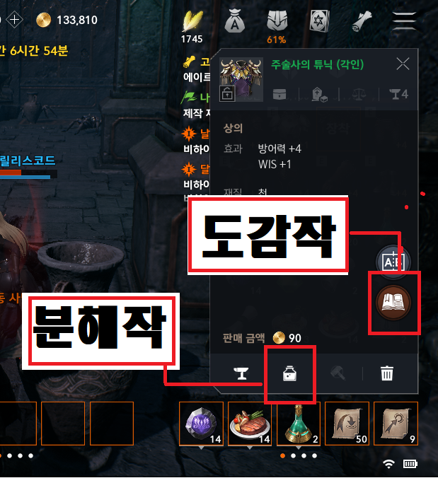 3. 필요없는 장비들이 모여도 도감작, 분해를 통한 결정석으로 캐릭터 성장