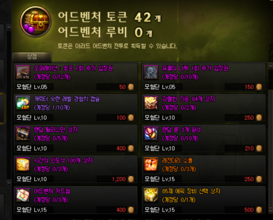 어엄.. 접속시 토큰 100개에 레전더리 일일던전 클리어하면 200개의 토큰을 얻을 수 있으니깐