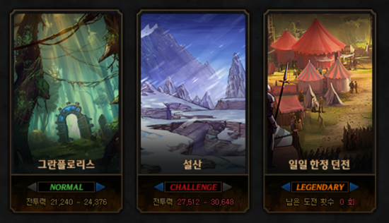 일일 한정던전은 레전더리 난이도 기준으로