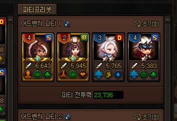 이렇게 뽑은 용병들은 바로 오른쪽에 있는 파티 프리셋을 이용해서