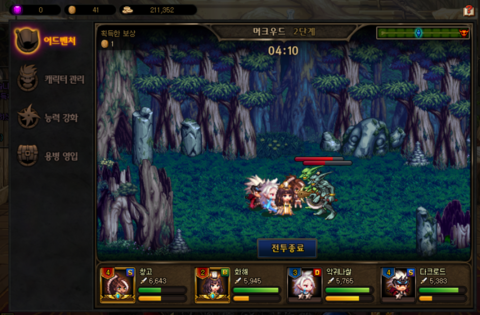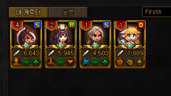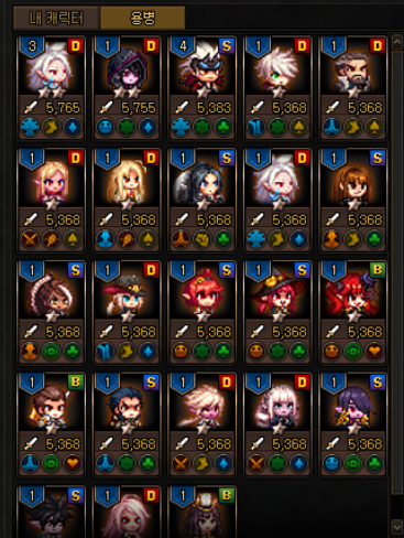 뽑은 용병들은 캐릭터 관리창에 가득가득 있는데요!