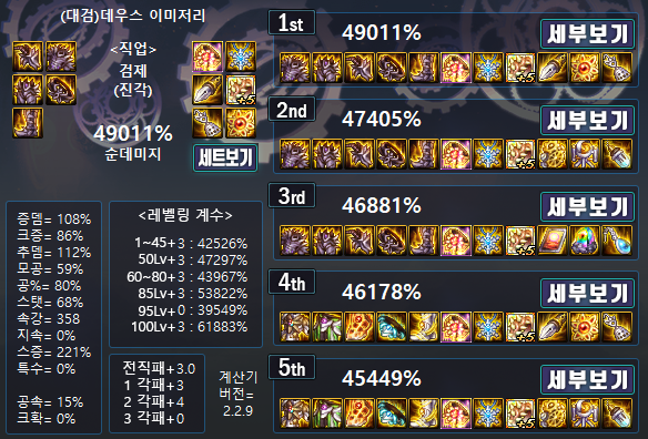 3. 직업은 검제, 무기는 데우스 기준임.