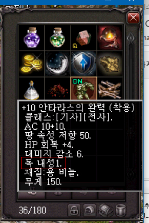 regist_poison에 1을 체크하면 방어구 아이템에 '독 내성1" 체크 된다.