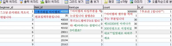 리니지 소스자료실 () 초기지원아이템 설정 방법 인게임 2017.01.06 - 18:03 246 나비켓 beginner 를 더블 클릭해서 엽니다 출처 : 구글링 Attached file thumb-1376440132_Lnb8cMoz_3ab5976f0efa36dc9b97a0517573ad93322597a6_600x160.jpg 33.6KB 1thumb-1376440132_KOHVewLp_3ab5976f0efa36dc9b97a0517573ad93322597a6_600x204.jpg 41.1KB 1 이 게시물을.. N 0 0 리마스터팩 요정 소울 엠피 수정jstory 0 인게임 인게임 님의 최근 글 쿠우 3.0 790 15 2017 01.08 sp팩 명령어로 운영자권한 얻기 497 2 2017 01.06 순수스텟 한스텟당 25까지 제한풀기 256 1 2017 01.06 엘릭서 제한풀기 소스 설명 223 1 2017 01.06 킬수로 랭킹 설정하는 시스템 175 2017 01.06 인게임 님의 최근 댓글 클라도 아르카나져 그럼? 2024 04.19 ㄳ 2024 04.15 ㄳㄳ 2024 04.10 클라 싸이즈가 80메가인데 돼는거맞음? 2024 04.10 되나여? 2024 04.10 글쓴이의 서명작성글 감추기 댓글 쓰기 에디터 사용하기 닫기 글쓴이 비밀번호 댓글 등록 view_headline 목록