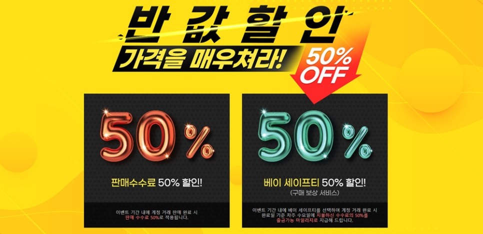 뿐만 아니라 아이템베이에서는 거래 시 반값으로 할인 해줘는 이벤트를 진행하고 있는데요. 판매자의 경우 판매수수료를 50% 할인해주고 있으며 구매자의 경우에는 베이 세이프티 50% 세일을 제공하고 있습니다. 여기서 베이 세이프티란, 구매 후 사기를 당했을 때 보상해주는 시스템을 말하는데요. 세이프티 상품은 일반 물품보다 수수료를 더 내야 하지만 반값할인 이벤트 중인 지금은 오히려 더 이득인 셈입니다.