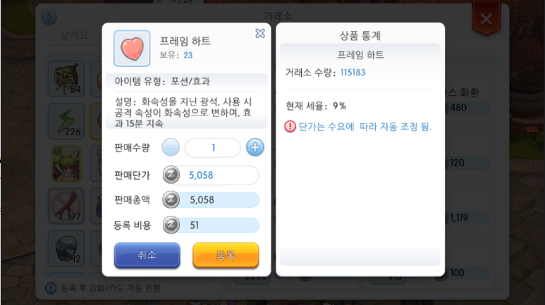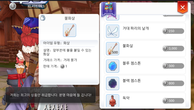 불화살의 경우에는 도구상점에서도 살 수 있는데, 프레임 하트 값이 6000원을 넘어가지 않는다면 불화살도 만들어서 사용하는게 이득입니다.