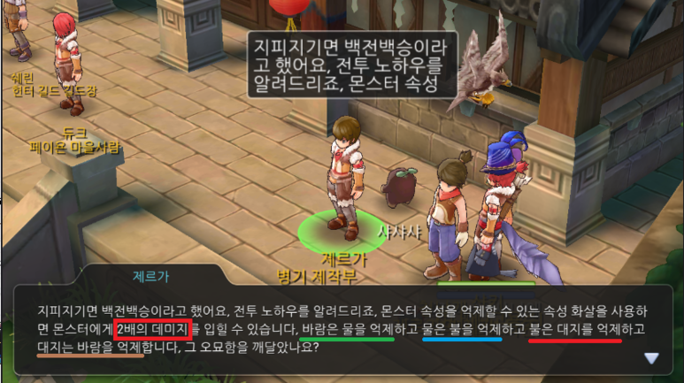 바람 > 물 > 불 > 대지 > 바람  순으로 세다고 알려줍니다.