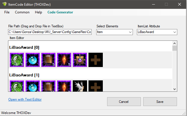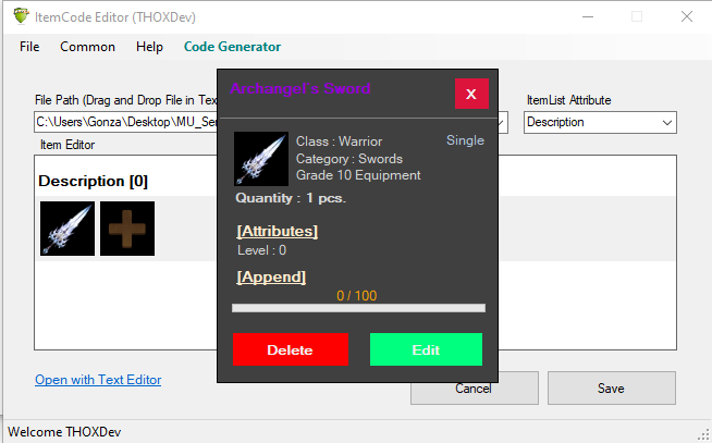 을 읽기 때문에 모든 버전에서 작동한다고 생각합니다. 구성하려면 "Item Code Editor.exe.config"파일을 열고 파일 위치를 변경