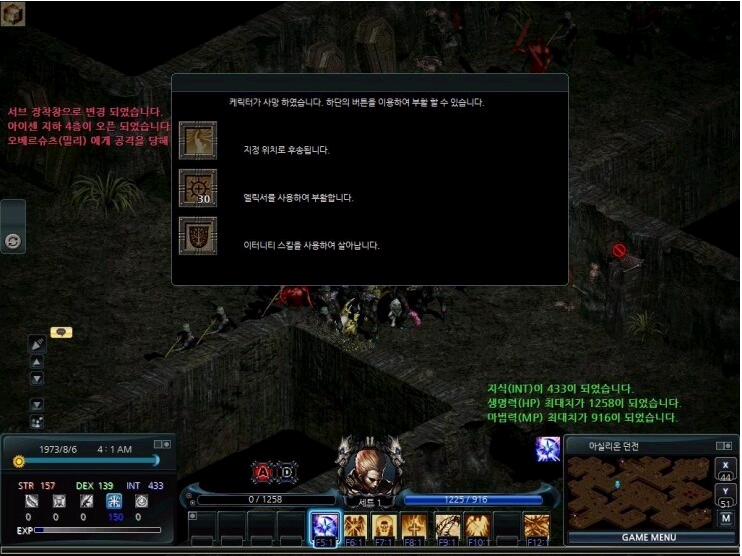 그리고 지정하지않고 사망을 했을경우 캐릭터가 부활하면