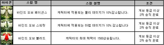 바인드 오프 페이션스 : 캐릭터에 적용 되는 물리 데미지 10% 감소.