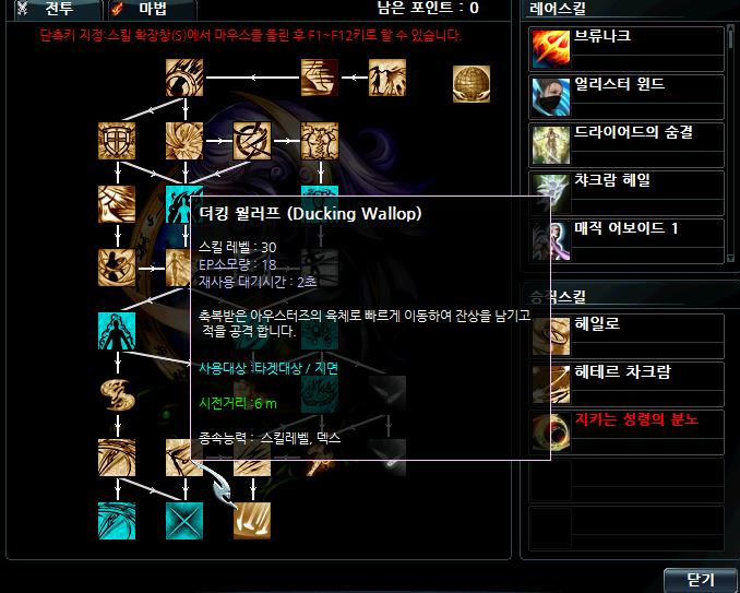 주의 하실 점이 처음 스킬 배울때의 포인트는 회사가 불가능 한 스킬이 몇 있어요.