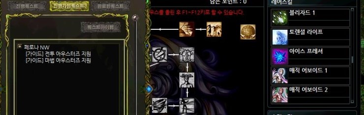 필자는 완료를 했지만.. 칼리스의 ??? 퀘스트가 있습니다. 그걸 완료하면 우측의 매직 어보이드 1.2스킬북을 주는데요..