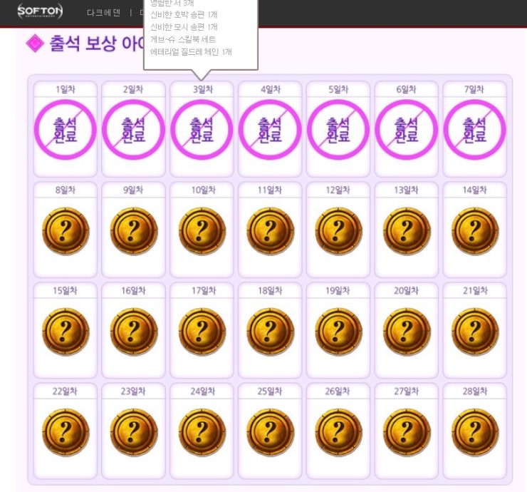 매일매일 연속 로그인이 아닌 이벤트 기간 안에 28번만 출석 체크하면 되니 참고하세요~