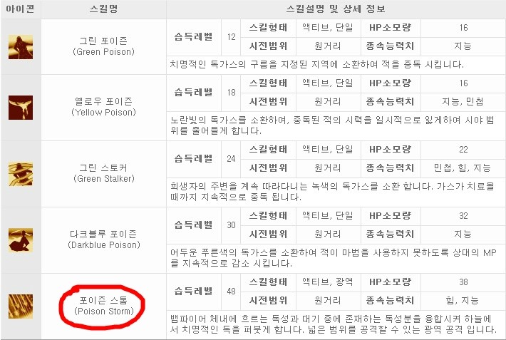 그리고 인뱀은 피흡이 참중요해요. 그리고 주로 사용해야 하는 스킬은 스톰 계열 스킬입니다.