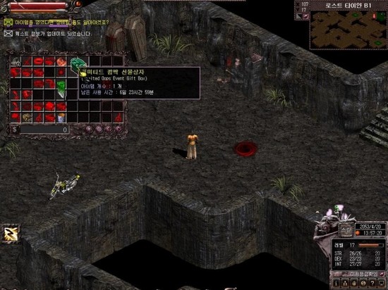 그럼 선물상자가 아템창에 있는데 선물상자를 오른쪽마우스로 클릭하면 아템이 떠요 !
