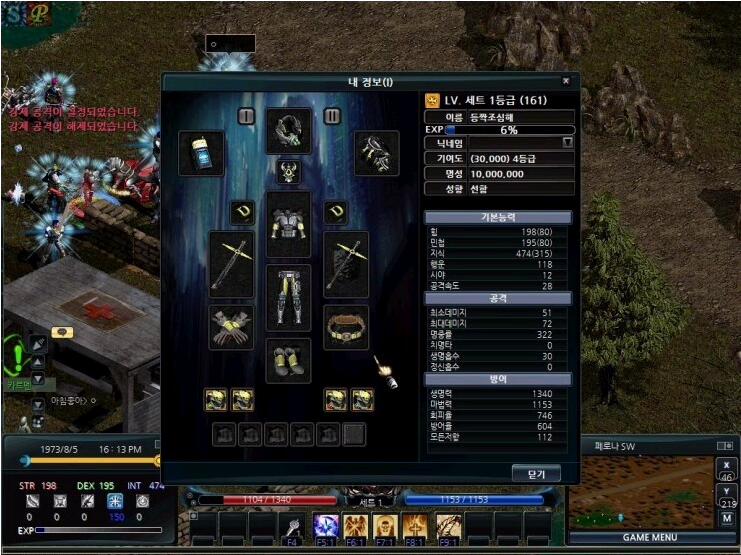 i 키를 누르면 내 정보창과 함께 현재 자신이 착용중인 장비와