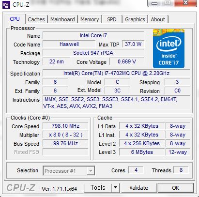 CPU 정보 확인 CPU-Z v1.71.1