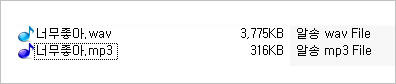 단순히 MP3로 바꿨을 뿐인데...크기가 10배 이상 차이납니다.