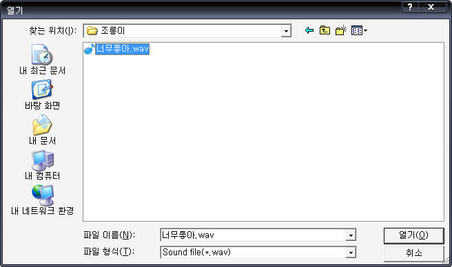 위의 파일이 원본으로 가지고 있는 소리 화일입니다.