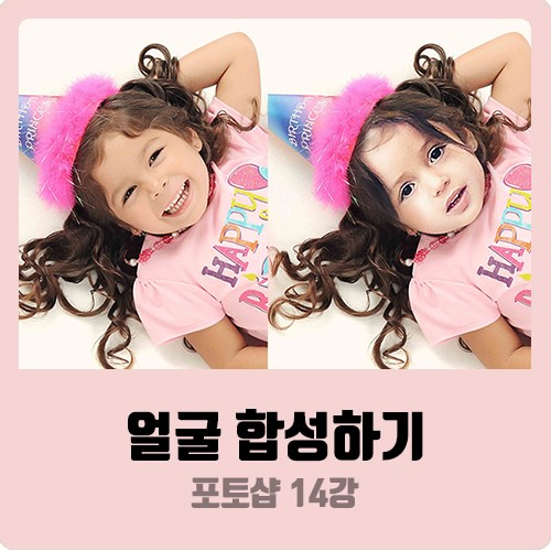 오늘은 포토샵 14강! 얼굴 합성하기를 배워보도록 할게요. 그동안 합성의 기초적인 부분들을 다뤘었는데요. 배운 것들을 활용해서! 가장 많이 하는 얼굴 합성하기를 해보려고 해요. 여러 가지 방법이 있지만~! 오늘은 초초초간단한 방법으로 정말 쉽고 빠르게 해보겠습니다 ㅎㅎ