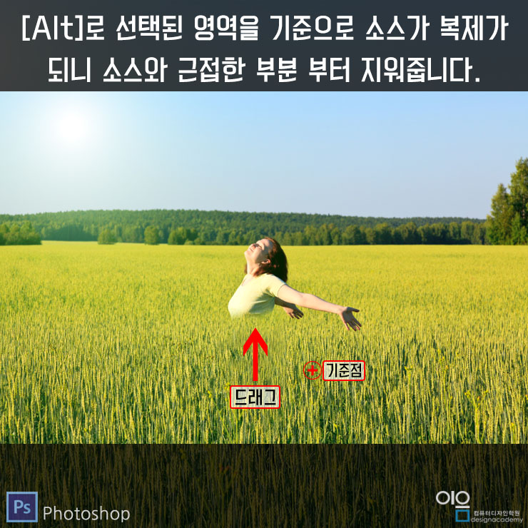 ▲그리고 [Alt]키에서 손을 뗀 후, 마우스 포인터를 지우고 싶은 영역의 위로 옮기게 되면 처음에 클릭한 복제가 될 소스가 보입니다.