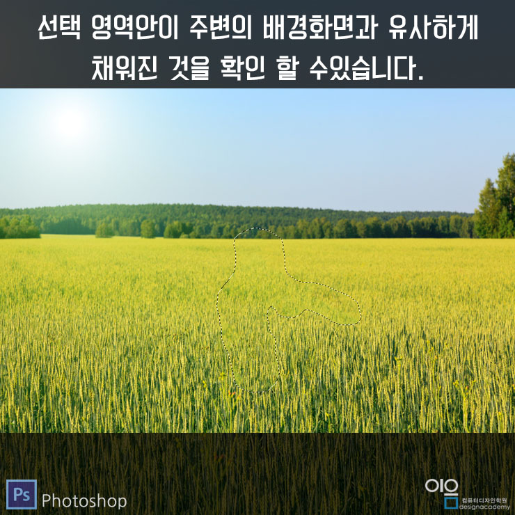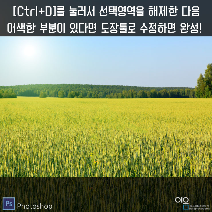 ▲마지막으로 [Ctrl+D]를 눌러서 선택영역을 해제한 다음 혹시라도 어색하게 채워진 부분이 있다면