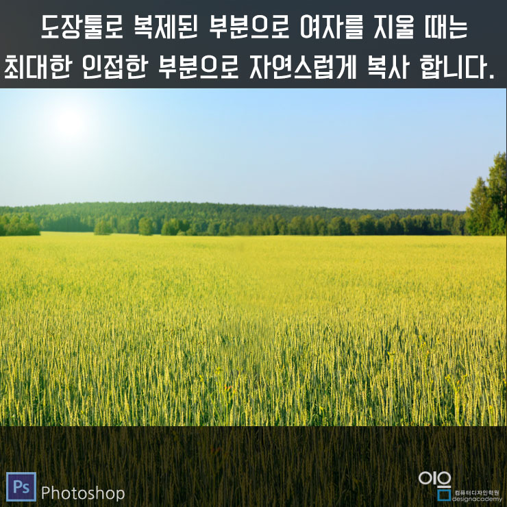 앞서 설명드린 도장툴로 자연스럽게 수정하면 불필요한 이미지를 손쉽게 지울 수 있습니다!