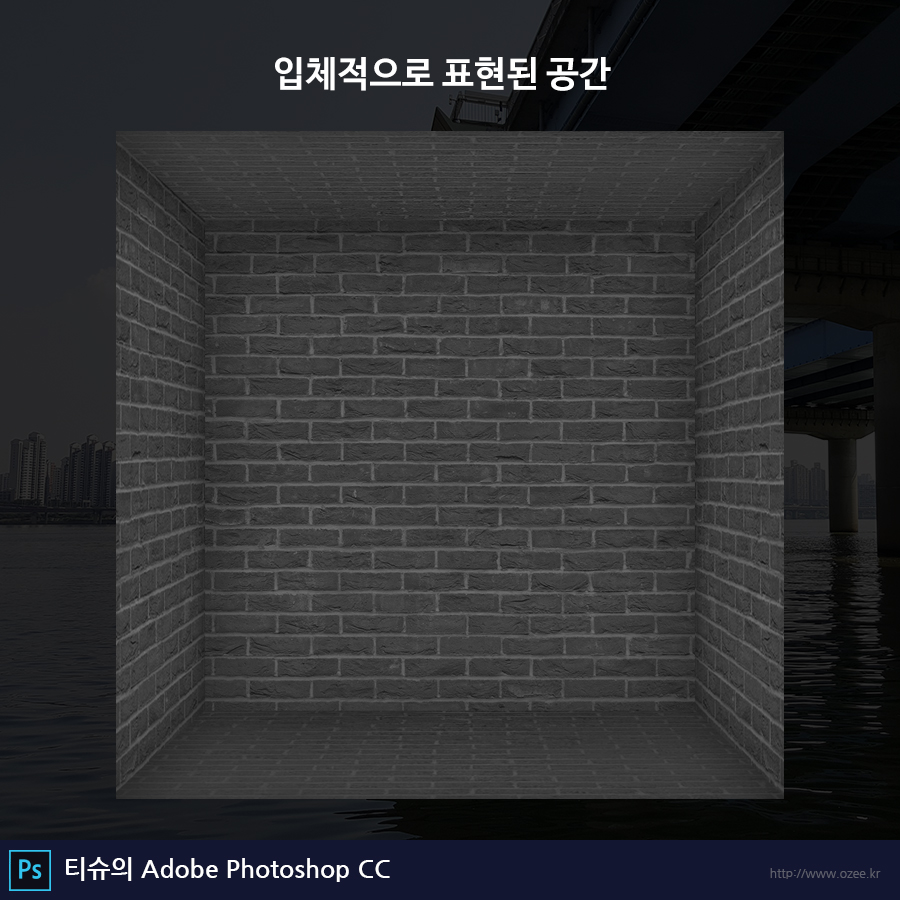 마치 컴컴한 지하실을 표현한 것 같죠? 굳이 3D 프로그램을 활용하지 않고도 충분히 포토샵으로 이런 스타일의 이미지는 만들어낼 수 있답니다.