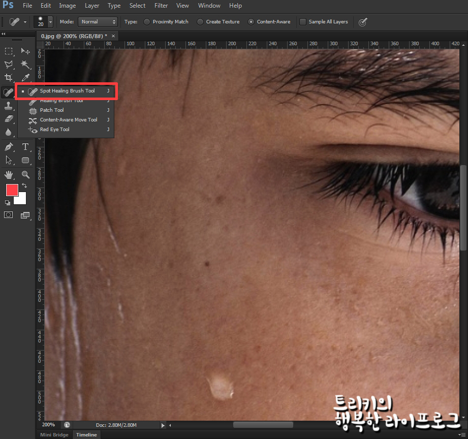 피부에 있는 잡티나 점같은 경우는 Spot Healing Brush를 이용해서