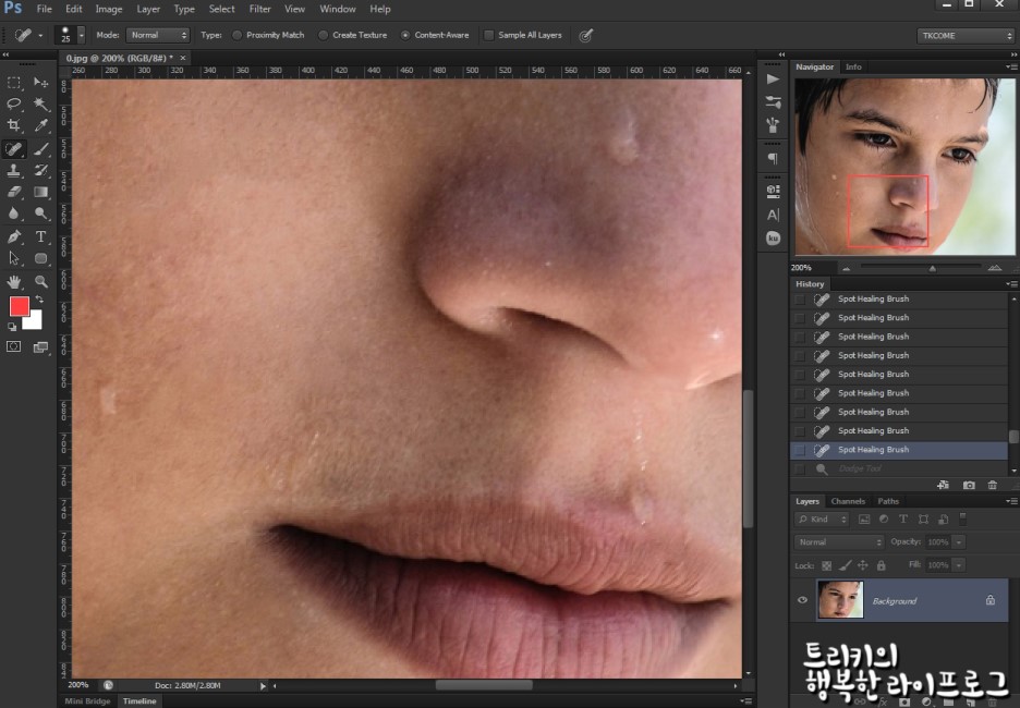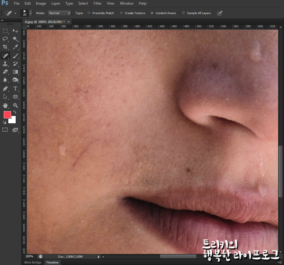 이것역시 스팟힐링브러쉬로 눌러주고, 어색해지면 Ctrl + z로 되돌리면서 작업해주면​