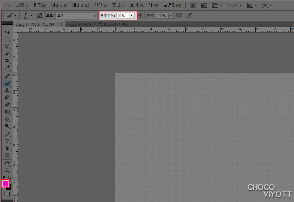 * 브러쉬 색상 선택 > 불투명도(Opacity) 설정