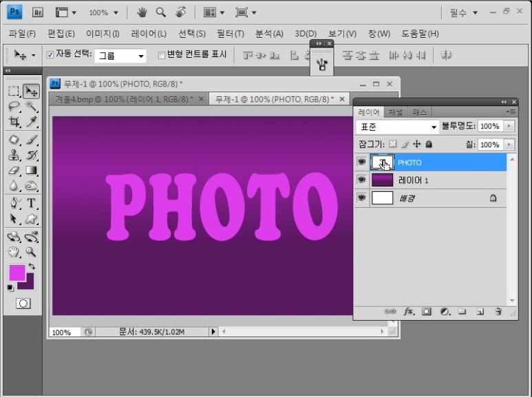 포토샵 CS4 한글판 강의 13강에서는 타입툴을 이용하여 문자 넣는 법에 대해 배웁니다.