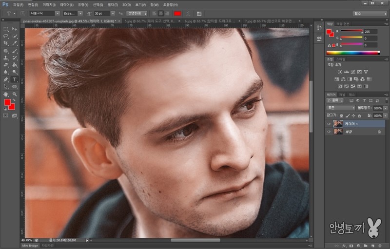 인물사진에 적용하면 잡티나 점을 아주 쉽게 가릴 수 있습니다