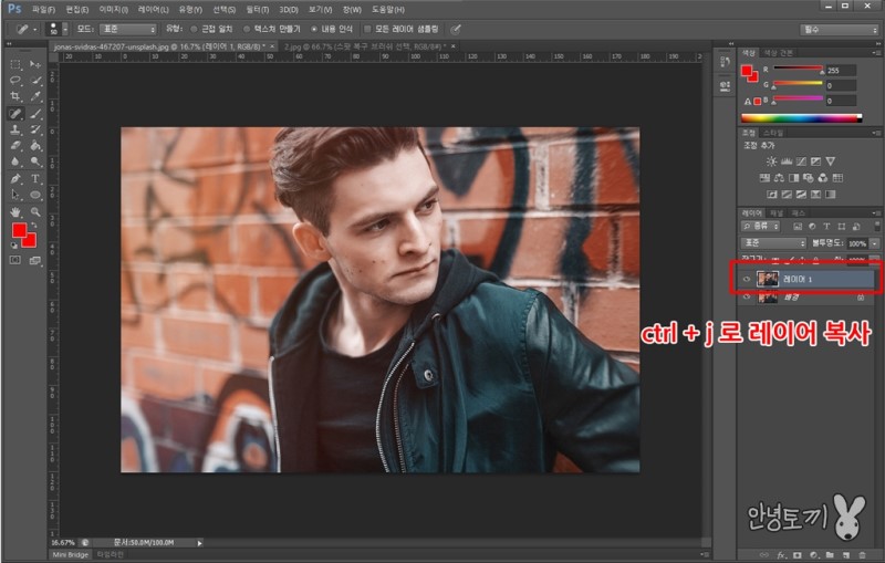 그 다음 단축키 ctrl + j로 레이어를 복사합니다