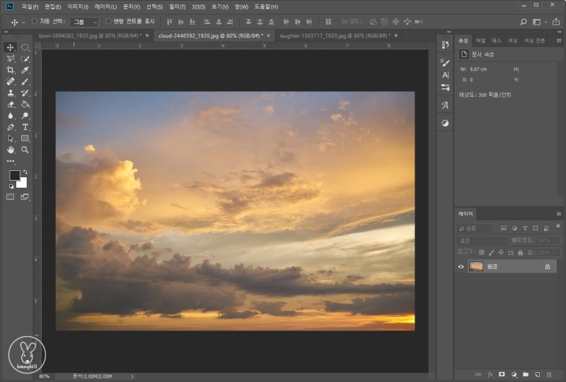 먼저 사진을 불러옵니다. 저는 석양 사진을 가져왔어요. 이 사진을 원래의 하늘색으로 바꿔보려고 합니다.