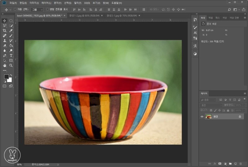 이번에는 색보정을 해볼게요. 알록달록한 그릇 사진을 불러왔어요. 사진 속 색상들을 잡아 다른 색으로 변경해주고 채도를 조절하려고 합니다.