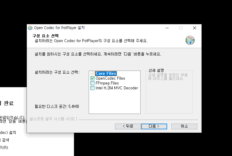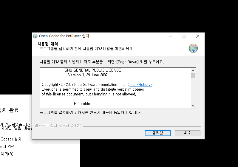 동의 - 다음. 추가 코덱 설치이니 그대로 진행하세요.