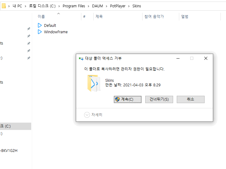 위에서 제공한 PotXMP 4.0 파일을 C:\Program Files\DAUM\PotPlayer\Skins 이 경로로 복사해 주면 됩니다.
