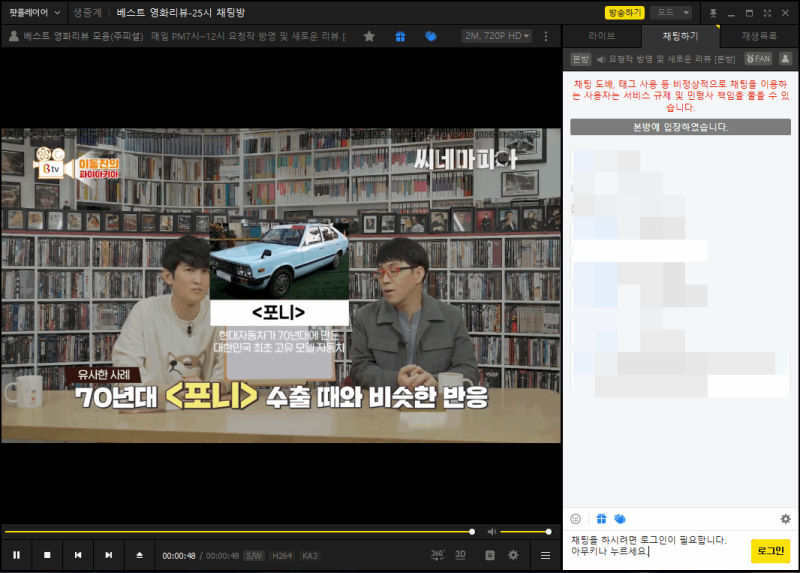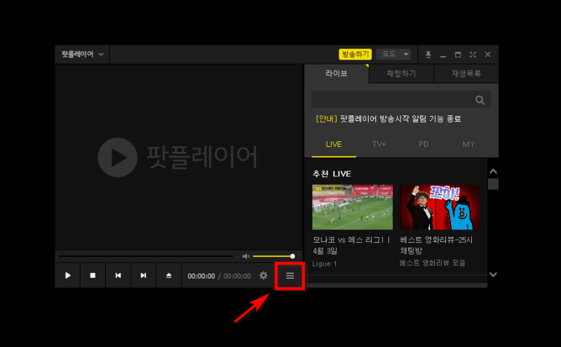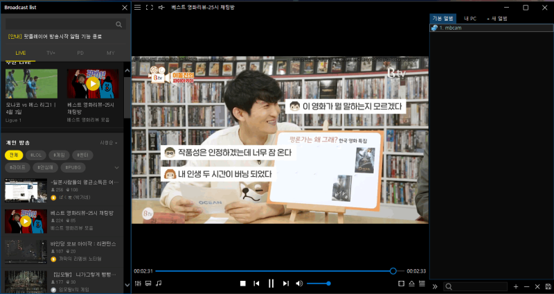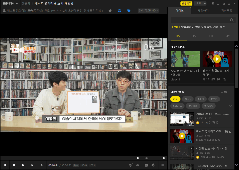 최신 버전처럼 라이브 방송도 볼 수 있고, 모든 기능을 사용 가능합니다. 당연히 광고는 없고요.