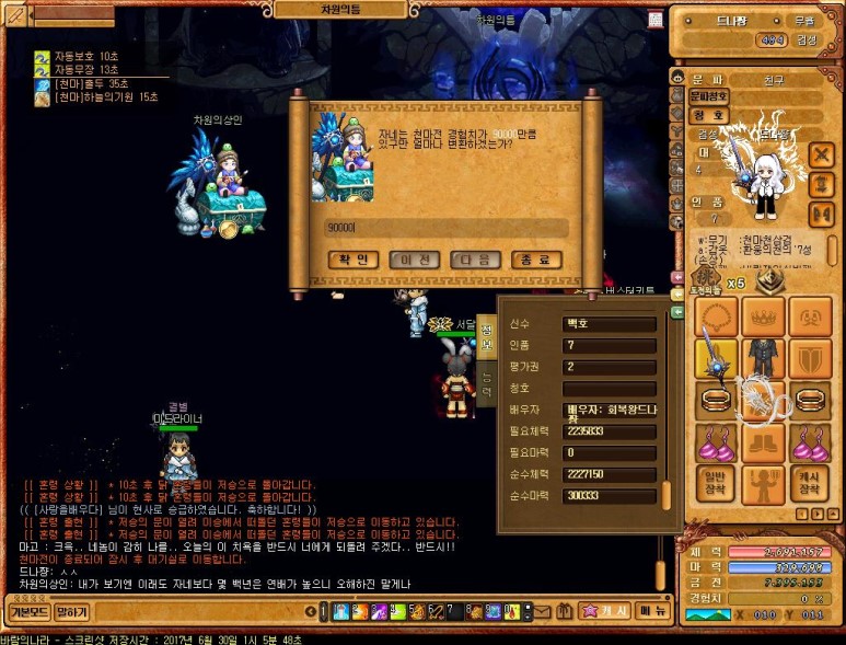 [2-7]경험치파는 놈에게 가서 최대9만점의 바람의나라 천마전 경험치를 받으면 된다. (ex:4시25분)