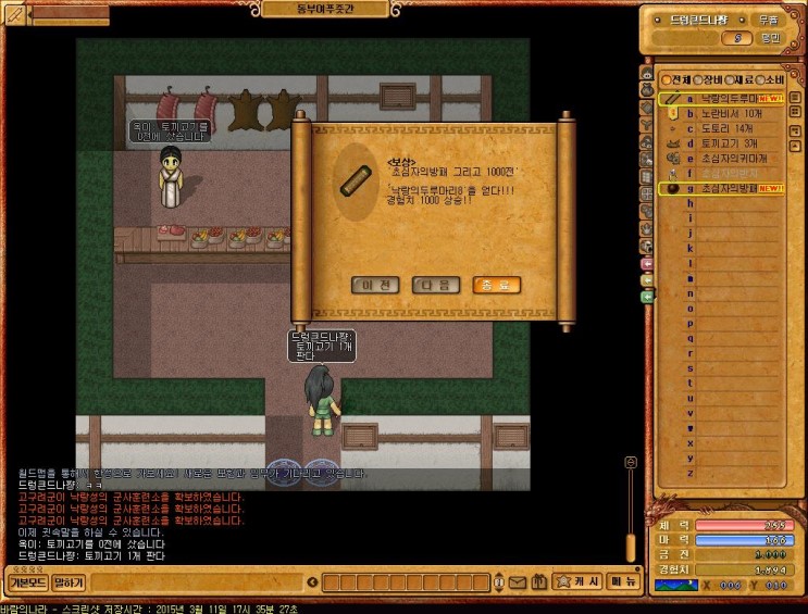 아 그리고 낙랑의두루마리 눌러서 시키는대로 토끼고기를 푸줏간에 팔면